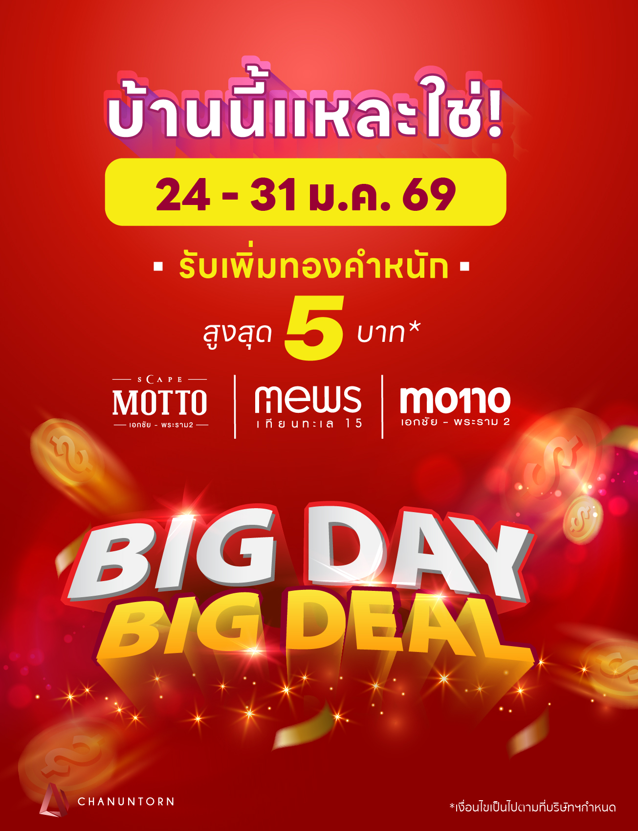 Big Day Big Deal บ้านนี้แหละใช่! รับเพิ่ม ทองคำหนักสูงสุด 5 บาท*